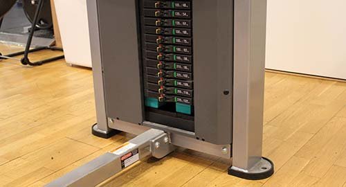 Att placera 50 mm Sylodyn® under er viktstack är en lokal och kostnadseffektiv åtgärd för att dämpa stötar och isolera bort stomljud som kan spridas till närliggande verksamheter och bostäder. Sylodynklossar kan levereras med måttanpassade hål, så att klossen kan monteras genom er gejder. Med samtliga mått kan vi beräkna den bästa möjliga vibrationsisolering.