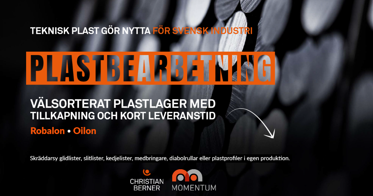 Avdelningen Teknisk plast hos Christian Berner är framför allt specialiserad på material med mycket låg friktion och hög slitstyrka, för glidbanor, mekaniska konstruktioner och inklädnader. Vi har kapacitet att skräddarsy glidlister, slitlister, kedjelister, medbringare, diabolrullar och plastprofiler i egen produktion. Vi erbjuder även korta svarstider, snabba leveranser och en maskinpark som drivs av grön el.