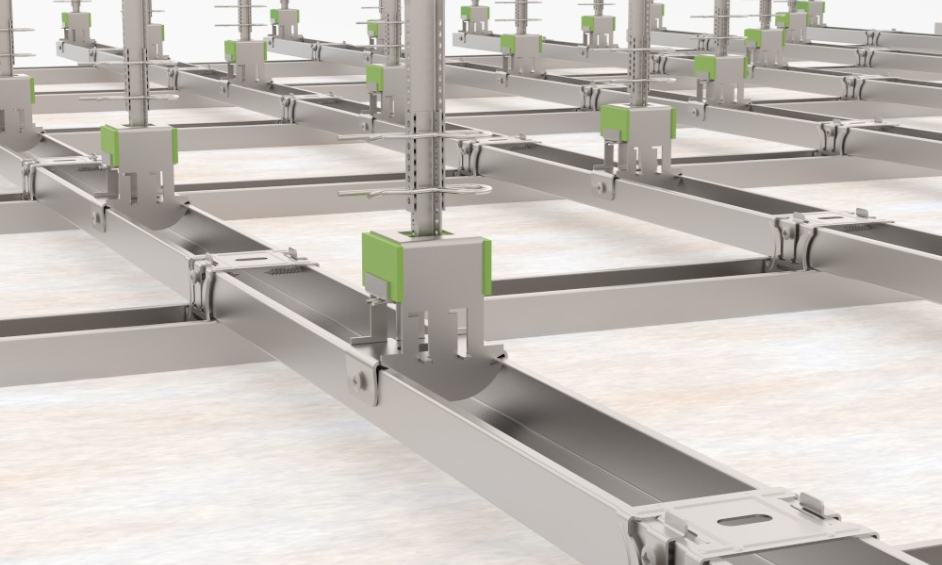 Europrofils system EuroCeiling erbjuder ett snabbt, enkelt och effektivt montage av nedpendlat undertak. Systemet är utvecklat för att få en optimal och kostnadseffektiv lösning med fokus på minskad materialåtgång. Komponenterna kopplas samman utan verktyg eller skruv, du sparar drygt 600 skruv för ett tak på 100 m2 och 1 lager gips är tillräckligt för att ersätta 3 lager gips om det används tillsammans med akustikhängaren från Christian Berner.
