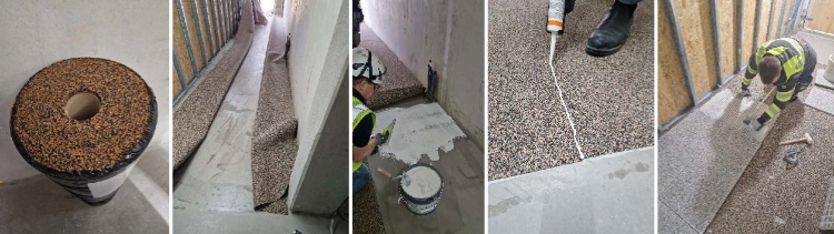 Under projektet blev det tydligt att stegljudskraven inte kunde uppnås med den ursprungliga lösningen. Då kontaktades Christopher Ehnemark på Christian Berner, som rekommenderade PureStep-paketet – en komplett lösning som kunde installeras under klinker utan att konstruktionen behövde ändras.