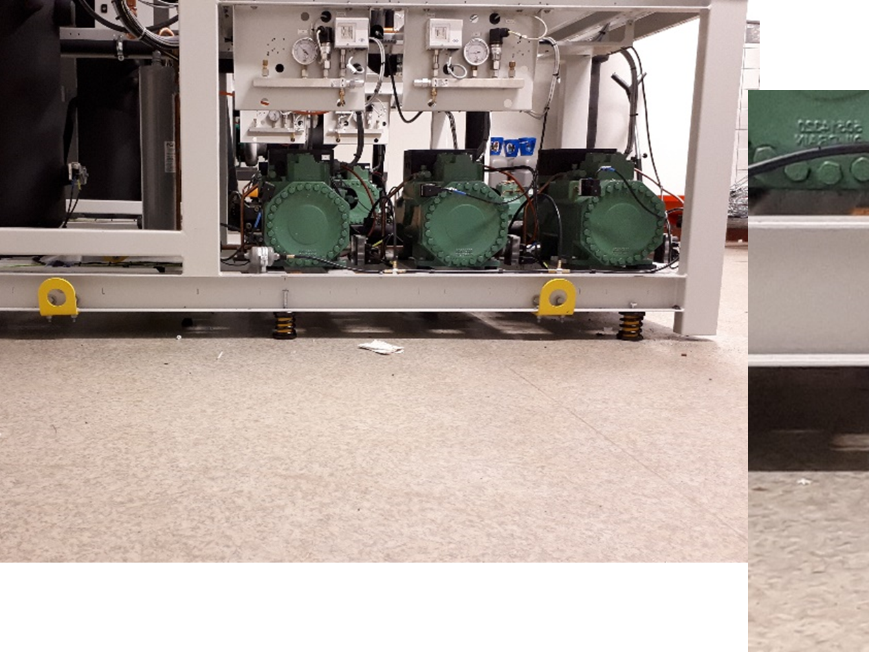 Kompressorerna är installerade i ramverk som står på fötter av gummi och stål. För att bli av med oljudet placerades gummikuddar under, men resultat uteblev. När man själv inte lyckades lösa problemet kontaktades Christian Berner. Rebecca Orvestad och Joacim Eklund föreslog att de skulle ställa upp ramverket på Isotop DSD, en stålfjäderisolator med Sylomer® HD-kärna integrerad i fjädern.
