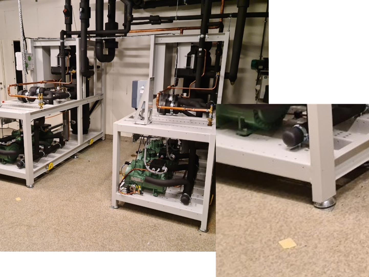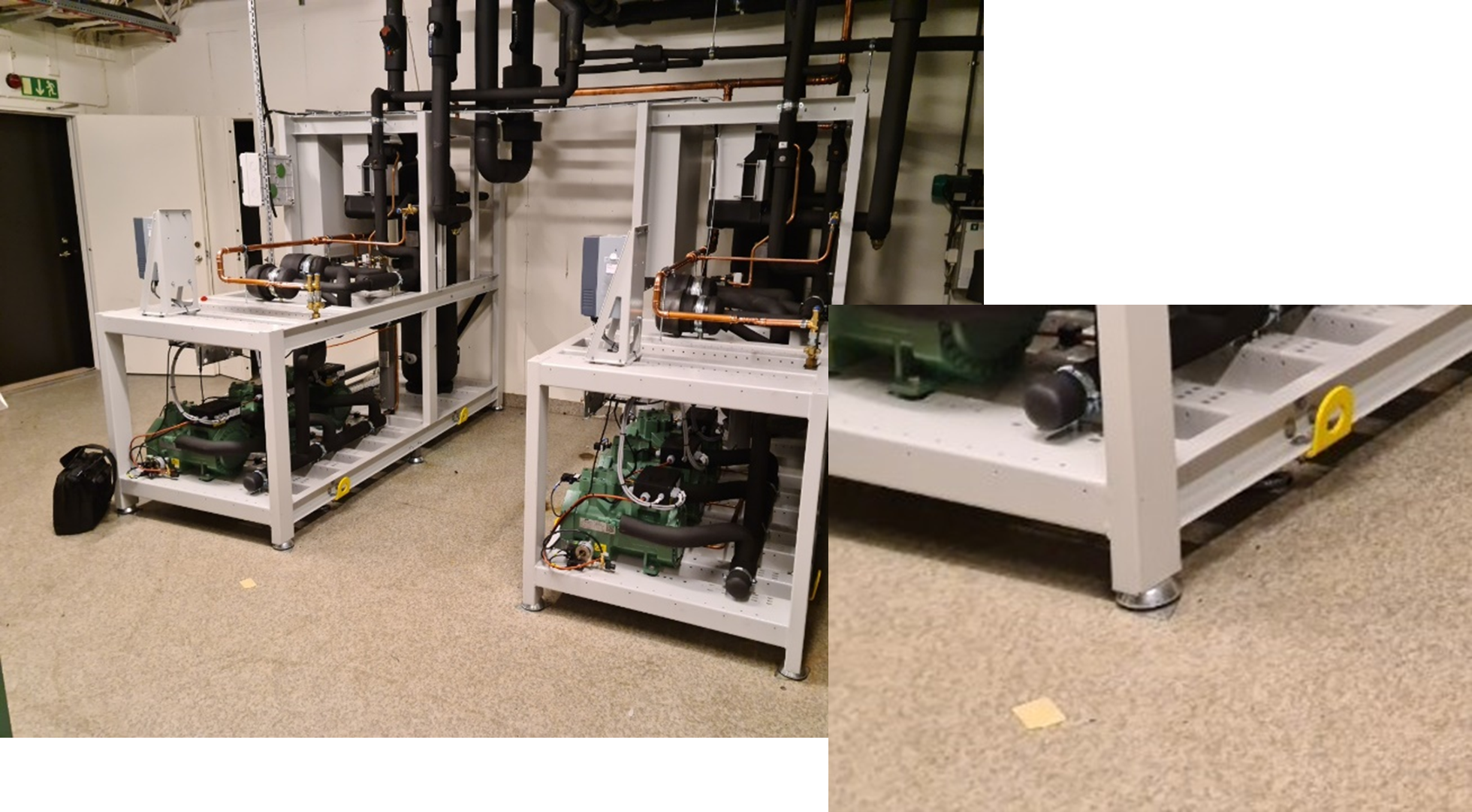 Före: Kompressorerna är installerade i ramverk på stålfötter
