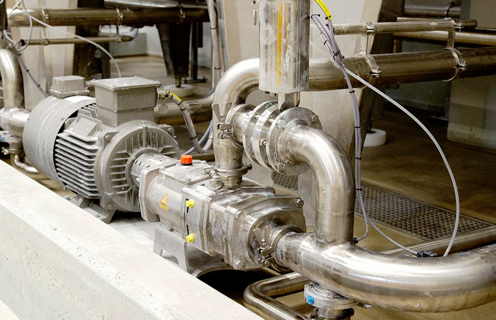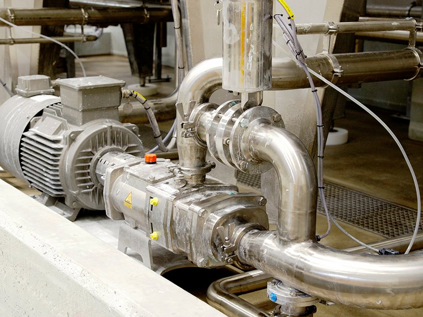 — Det som är unikt med denna anläggning är att den även transporterar stora mängder av lågviskösa medier, så kallade CIP-lösningar, säger Jerry Heinonen, försäljningsingenjör på Christian Berner, och fortsätter: — CIP betyder Clean In Place och denna pump klarar även av denna rengöringsprocess, vilket gör att det inte behövs en separat pump till detta.