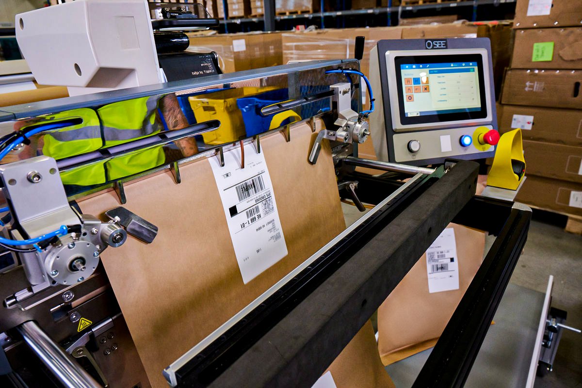 Tryck högupplösta fraktetiketter direkt på papperspåsarna