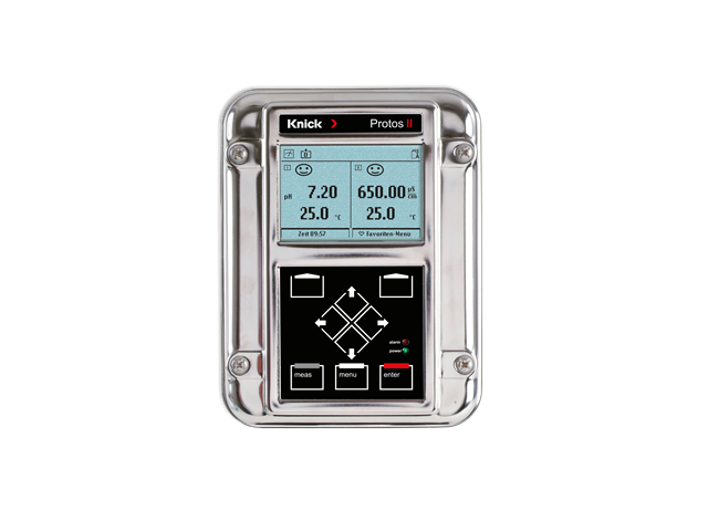 Protos pH kan enkelt kompletteras med en extra mätmodul för konduktivitet, pH eller syre. Instrumentet har en stor och tydlig belyst display med parallell temperaturvisning.