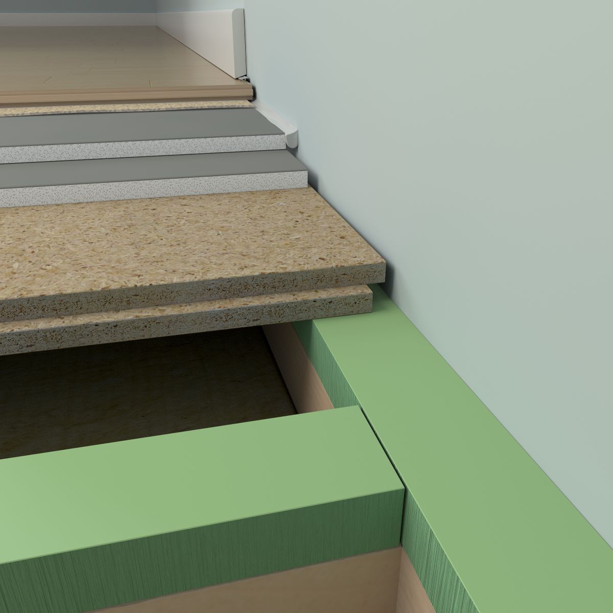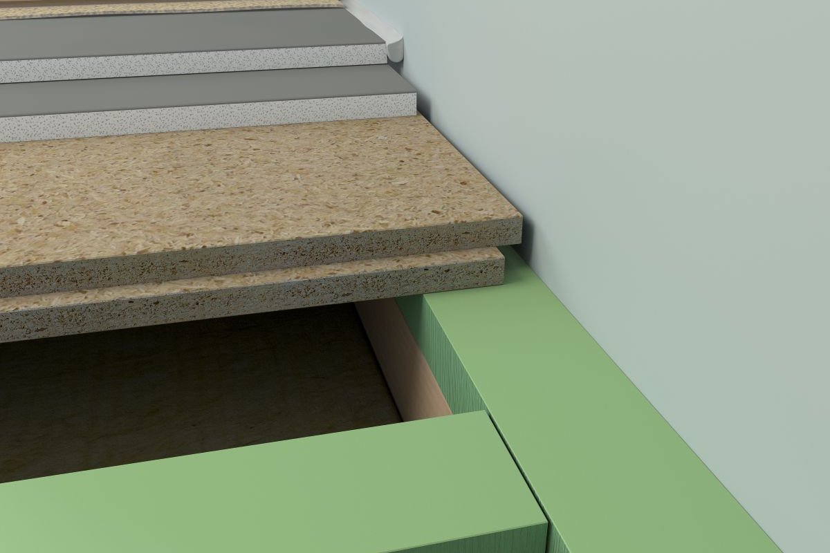 Den mest effektiva ljudlösningen med stegljudsklossar med mål att nå stegljudsklass B eller bättre. Stabilt golv med hög komfort.