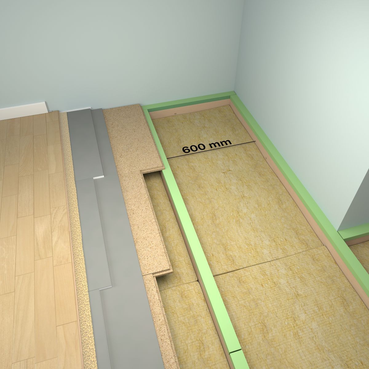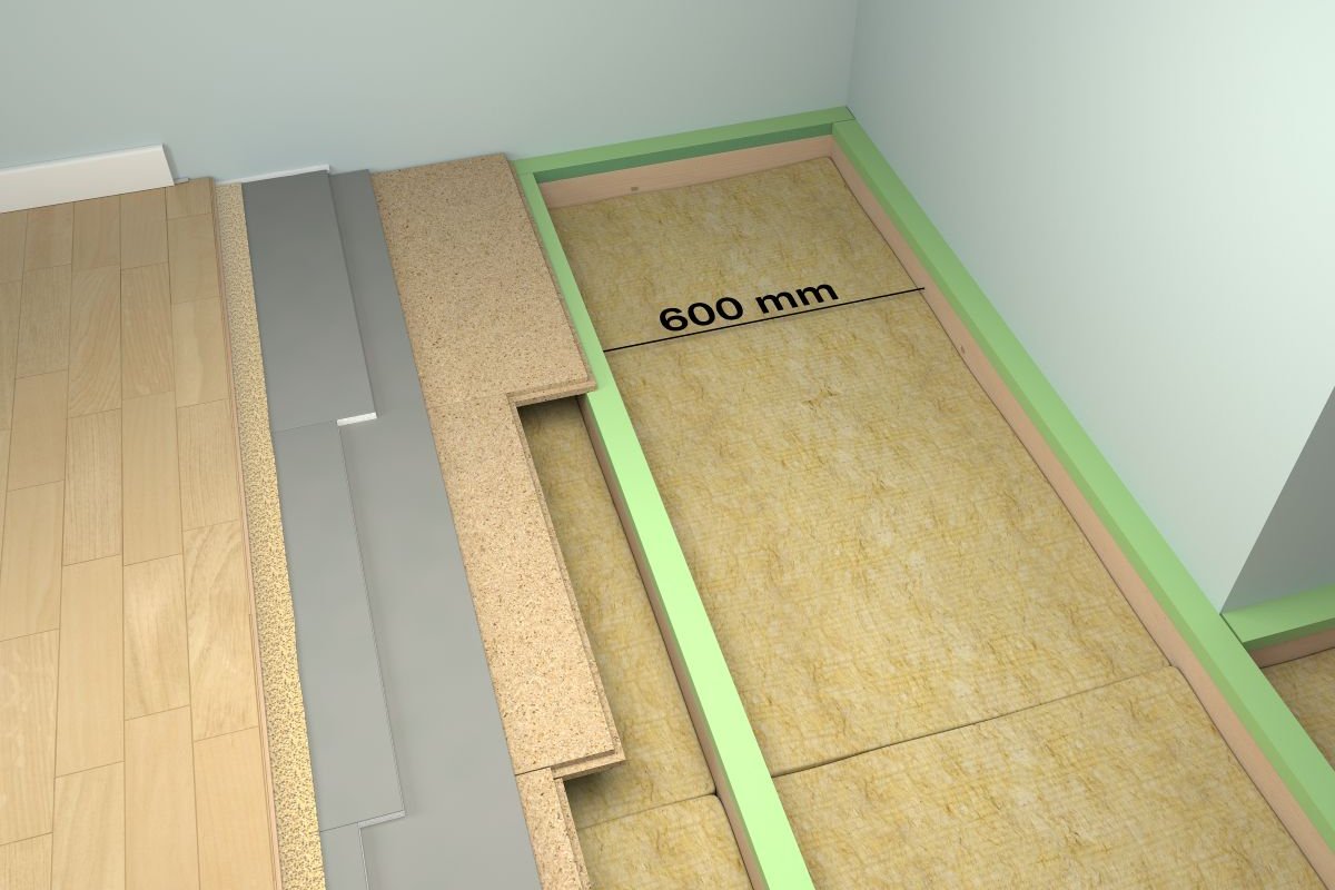 Ljudöverföring från en lägenhet till en annan kan ta flera vägar varav stegljudet ofta är dimensionerande. Inte nog med att den inbyggda stegljudsisoleringen skall isolera exciteringen av stegljud, den skall samtidigt vara tillräckligt styv för att ej ge för